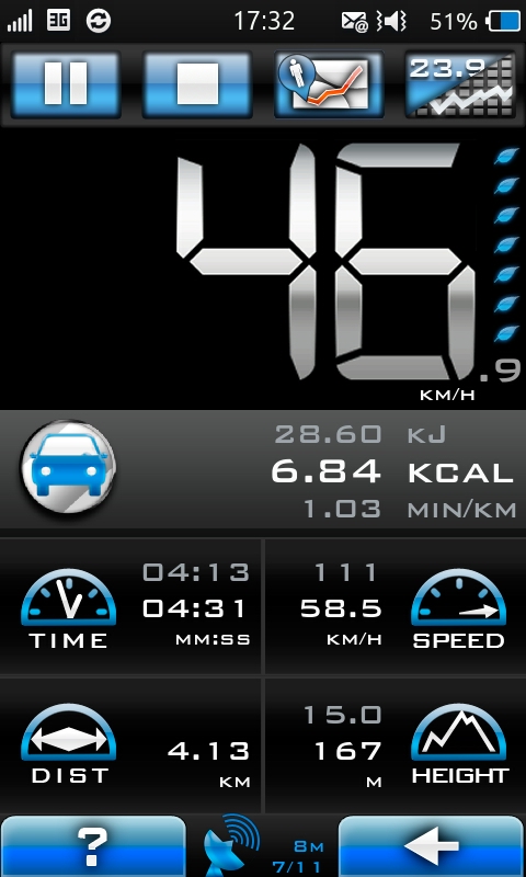 - shows complete results (e.g. average speed, maximum speed, total time, calorie consumption, altitude, distance...)