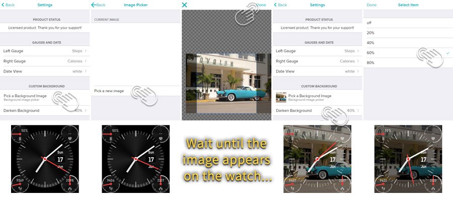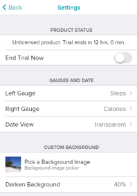 If you want to use your own background image or set other fitness data for the gauges, just use the App Settings within the Fitbit app.