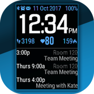 The Companion App is needed to collect the calendar data and upload secured to the qooApps server hosted by STRATO. Only the shortend entries from the calendar and your private Code, which only shown in your Garmin App, will be uploaded via secure HTTPS. On the server it will stored in an encrypted database. The data will not shared to anyone and will only used by the watchface with the correct Code.