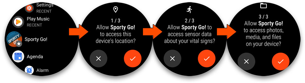 At first you open the app browser on your watch and allow the requested permissions: